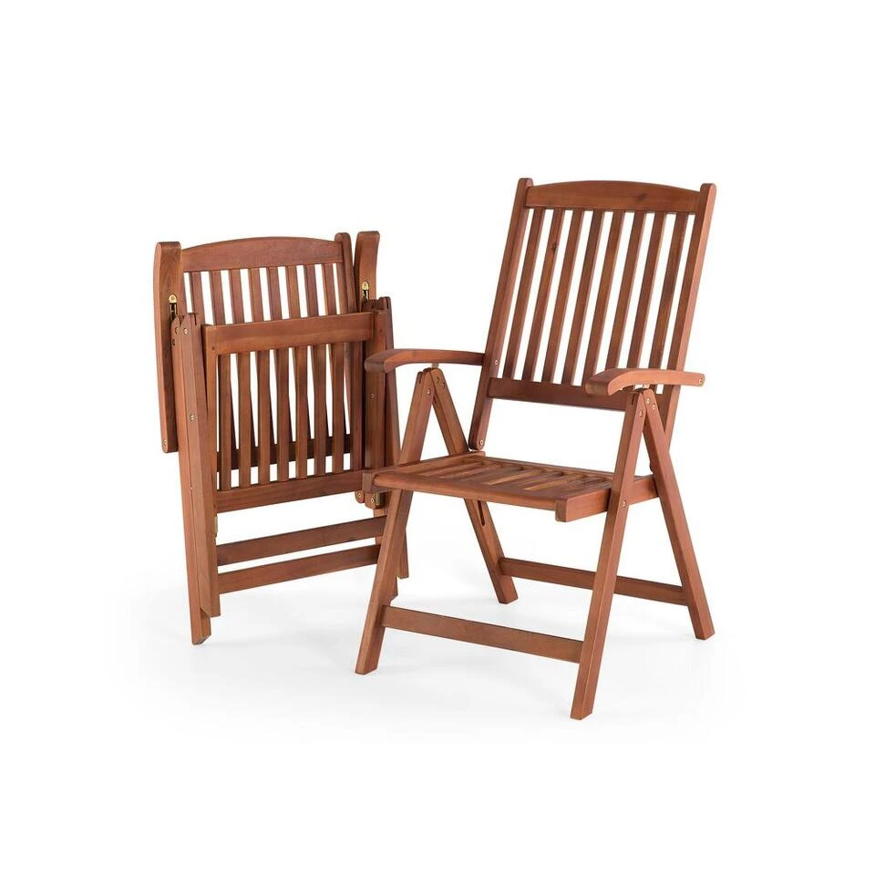 Twee tuinstoelen met zachte grijsbeige kussens. Met deze praktische en comfortabele stoelen kun je een idyllische hoek op je balkon of terras maken en genieten van lange, warme zomerdagen. Het tuinmeubilair is gemaakt van prachtig acaciahout en heeft een driestaps instelbare rugleuning. De set bevat ook twee bijpassende kussens die een hoog zitcomfort garanderen.