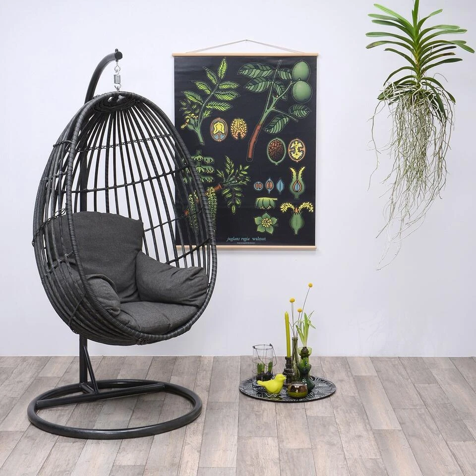 In de Panama hangstoel kan het echte relaxen beginnen. Heerlijk comfortabel schommelen en zitten dankzij het stevige frame en dikke polyester kussen. Zie jij jezelf al heerlijk een boek lezen in deze echte eyecatcher voor in de tuin? De hangstoel is een perfecte toevoeging aan iedere tuin. Een heerlijk plekje om je even in terug te trekken. De hangstoel heeft de vorm van een ei, waardoor je er lekker in weg kunt kruipen. Door het comfortabele kussen geniet je gegarandeerd van lang zitcomfort.