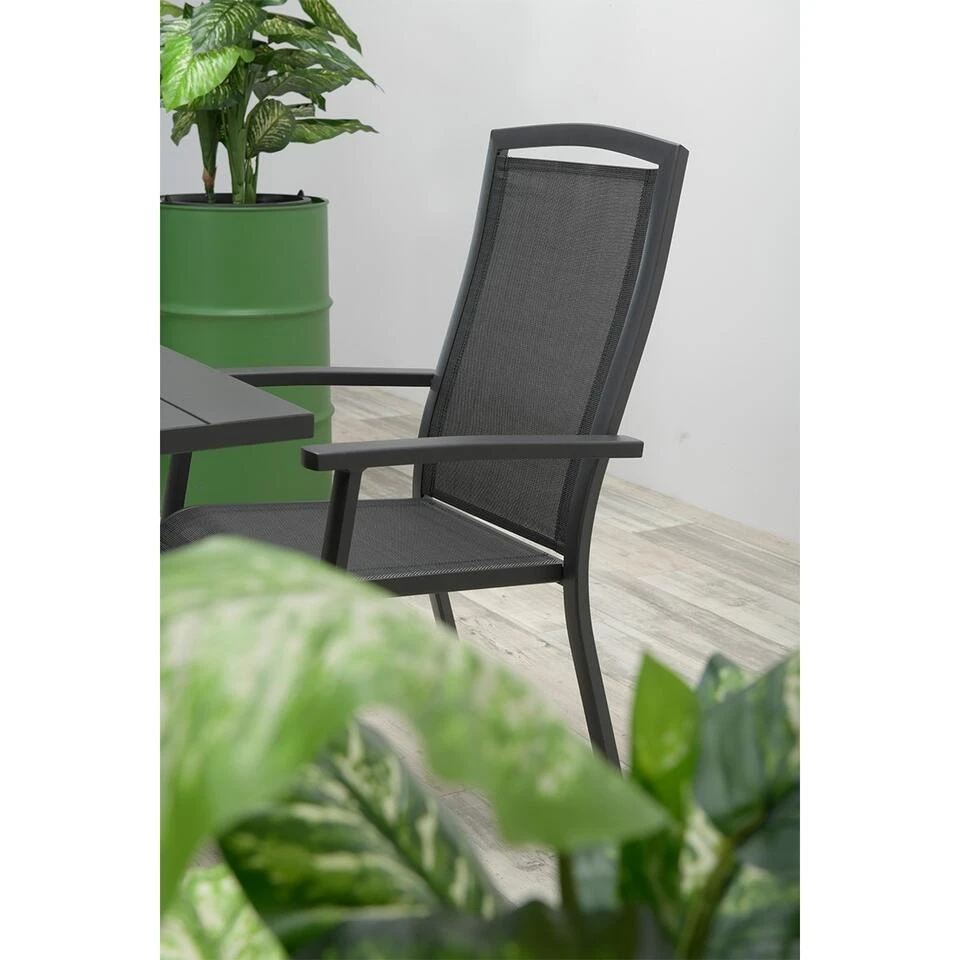 De Rosa verstelbare tuinstoel is gemaakt van een volledig aluminium frame. Zelfs alle scharnieren en bevestigingspunten zijn van aluminium. Dit aluminium frame is voorzien van een stevige poeder coating laag. Voor de zitting en rugleuning is een comfortabel textilene all-weather doek gebruikt voor extra zitcomfort. De Rosa tuinstoel heeft een sterk en licht aluminium frame. Hoogwaardig comfort van kwaliteitsmerk Garden Impressions. Deze verstelbare tuinstoel kan gemakkelijk verplaatst worden. De stoel is daarnaast onderhoudsvrij en gemakkelijk schoon te maken.