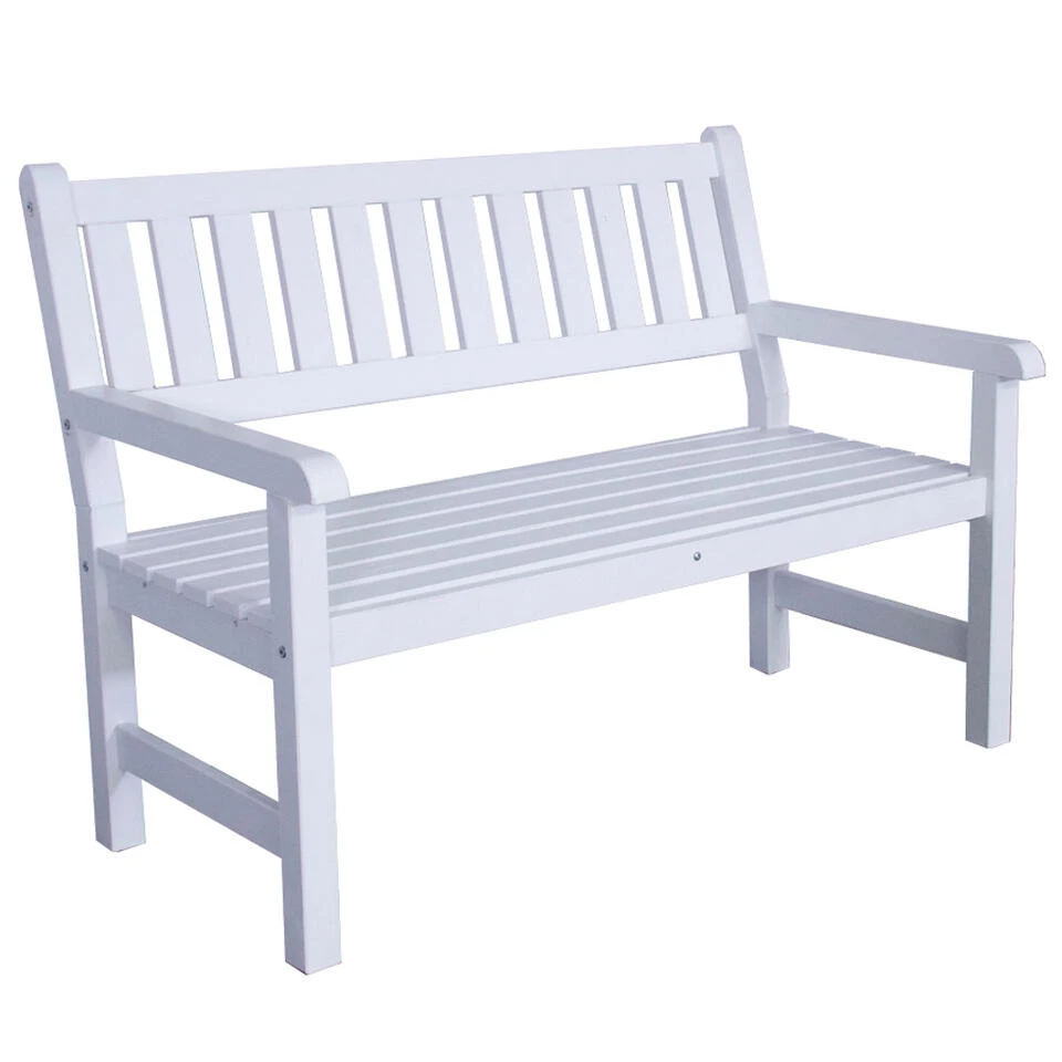 De moderne tuinbank is gemaakt van grenenhout en gebeitst in een witte kleur. Het 100% FSC gecertificeerde hout heeft een lange levensduur. Dit bankje biedt 2 zitplaatsen voor in je (kleine) tuin, balkon of voortuin.