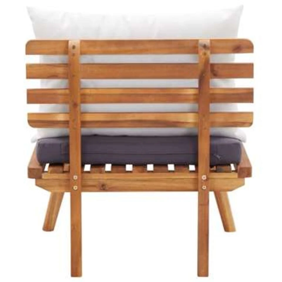Deze houten tuinstoel met kussens is het middelpunt van je tuin of terras.