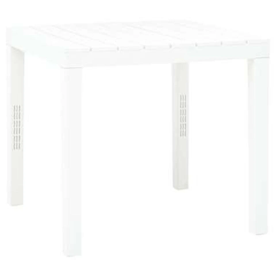 De tafel is gemaakt van duurzaam kunststof waardoor hij weerbestendig en gemakkelijk schoon te maken is. Het tafelblad met gelat ontwerp voegt extra elegantie toe. Daarnaast is hij lichtgewicht zodat je hem eenvoudig kunt verplaatsen.